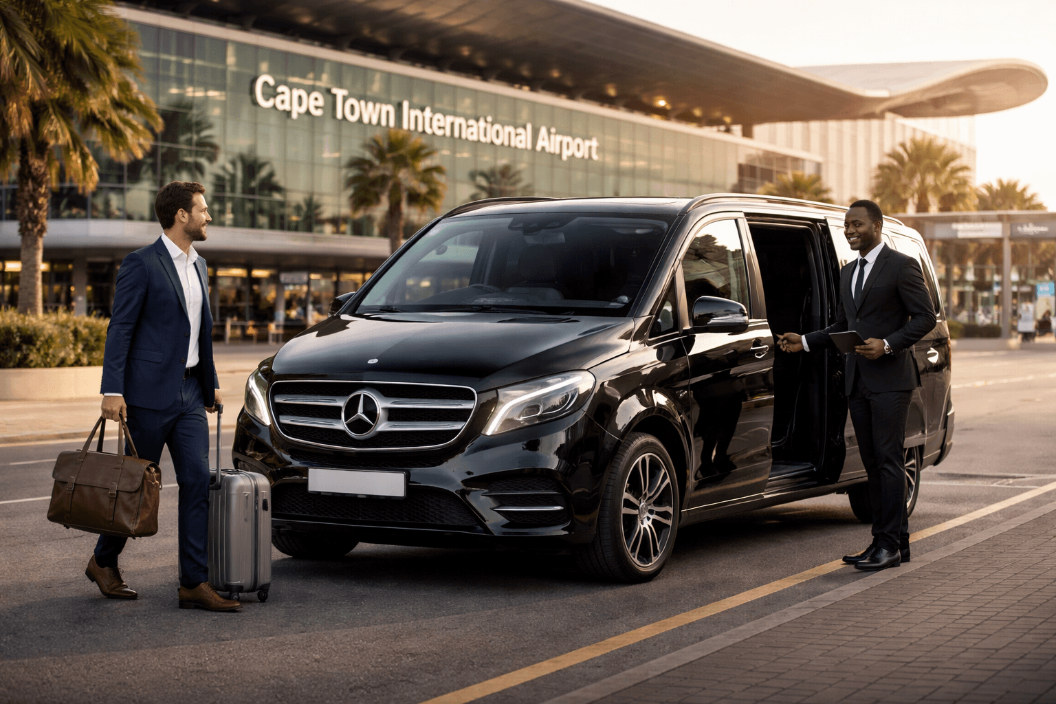 Reliable, professional chauffeur services in Cape Town with Mercedes C-Class and V-Class vehicles. Airport transfers, private drivers, VIP transport and city tours available 24/7.